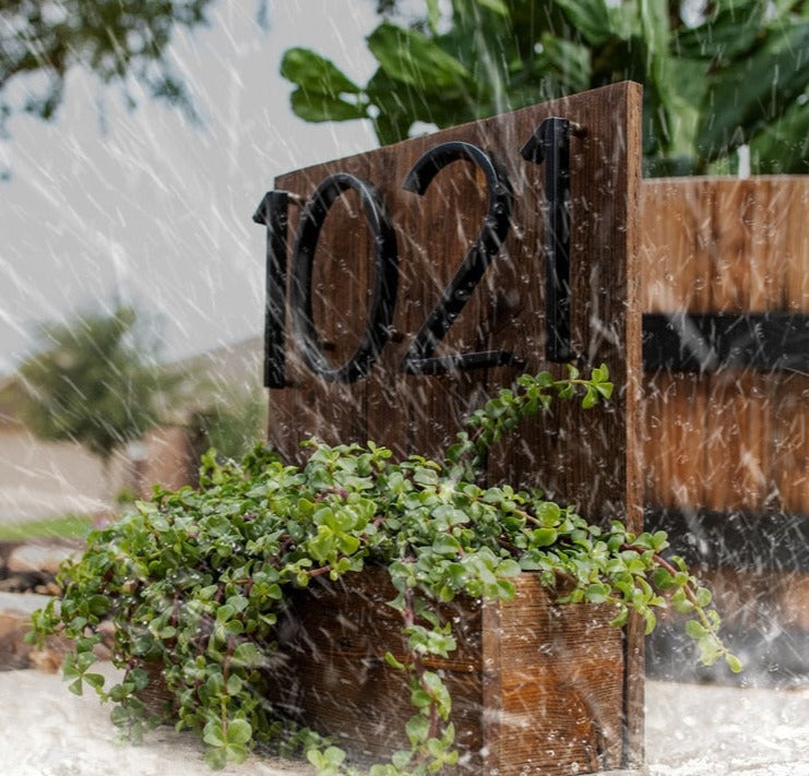 Números de porta anti-ferrugem com efeito flutuante. Poderá aplicar na parede diretamente ou inspirar-se e fazer a sua própria criação manual com uma base em madeira. Inspire-se e partilhe connosco a sua criação!
