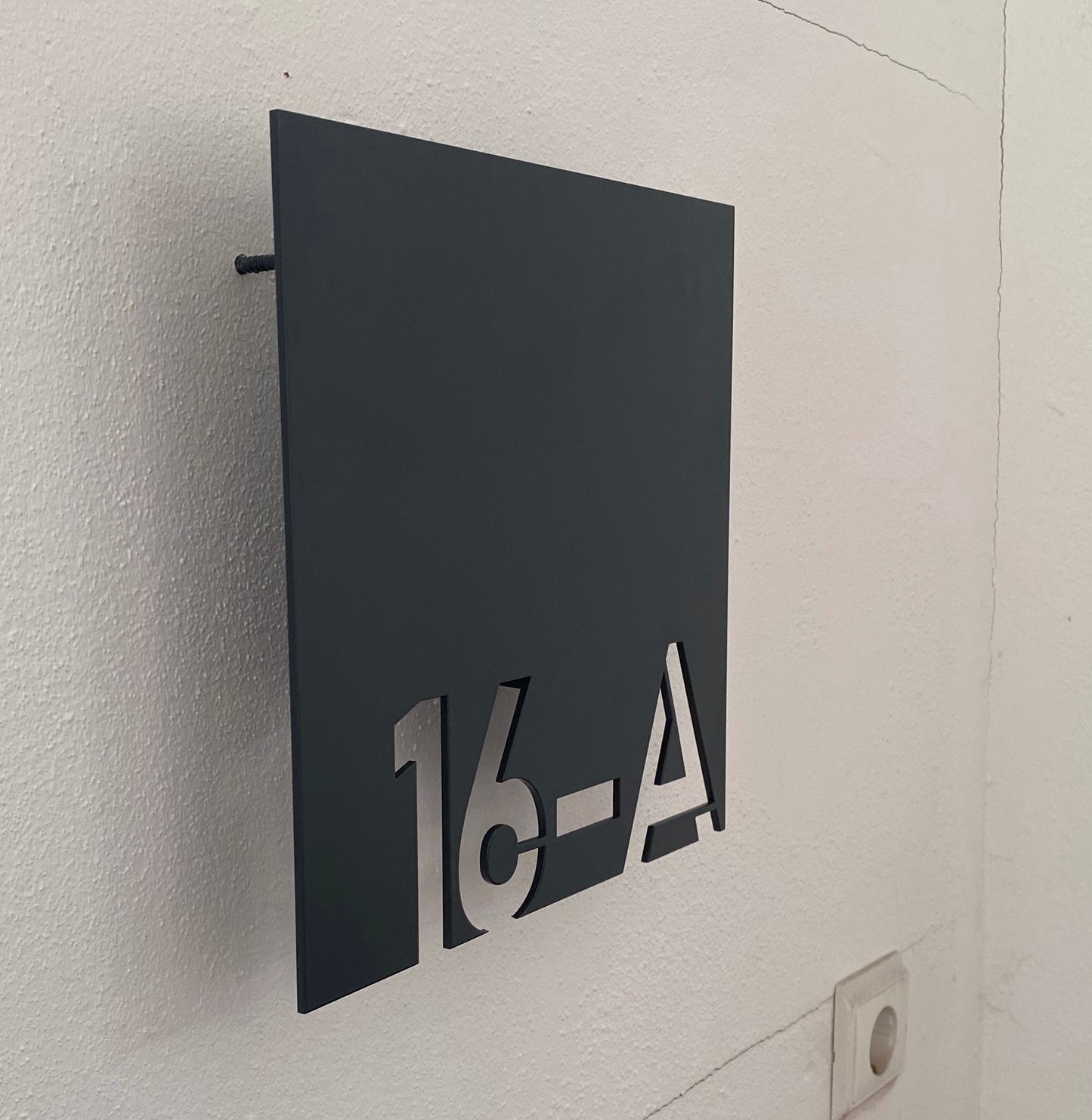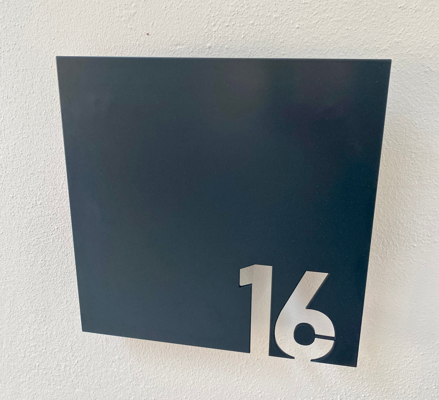 Placa com números de polícia personalizados em aço inoxidável de 3mm de espessura em cor natural ou lacado a cor da sua preferência.